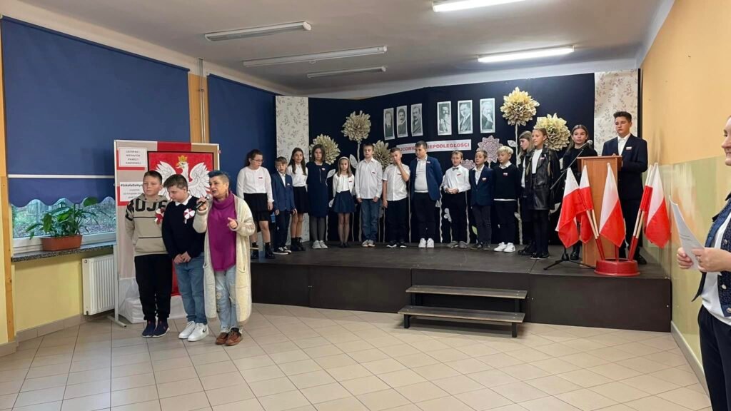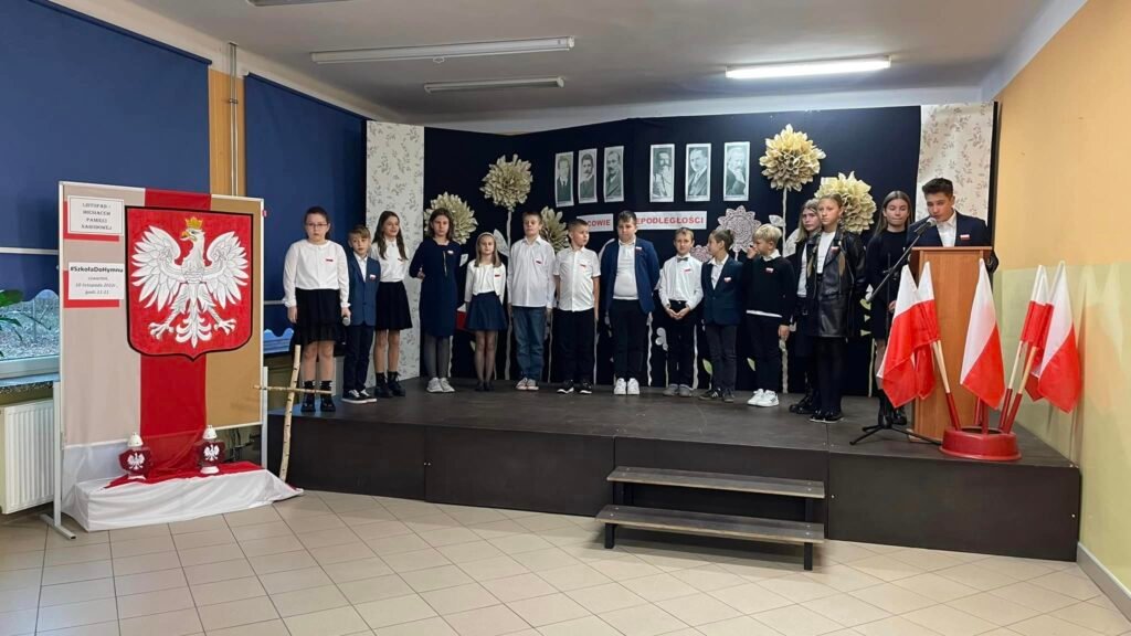 To dzisiaj miały miejsce uroczyste obchody Narodowego Święta Niepodległości w naszej szkole. Klasa IV oraz kilku uczniów z klasy VIII