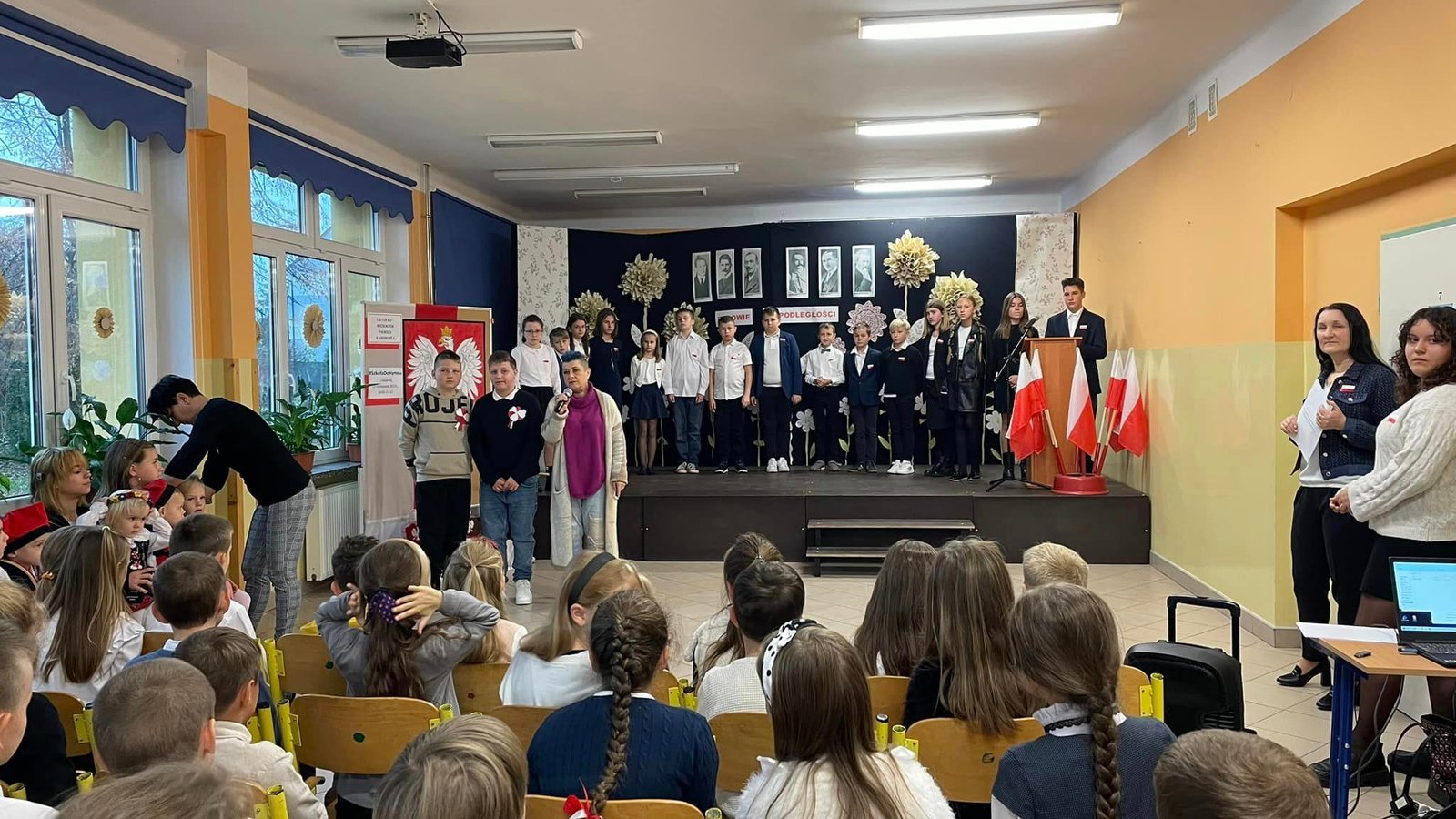 To dzisiaj miały miejsce uroczyste obchody Narodowego Święta Niepodległości w naszej szkole. Klasa IV oraz kilku uczniów z klasy VIII